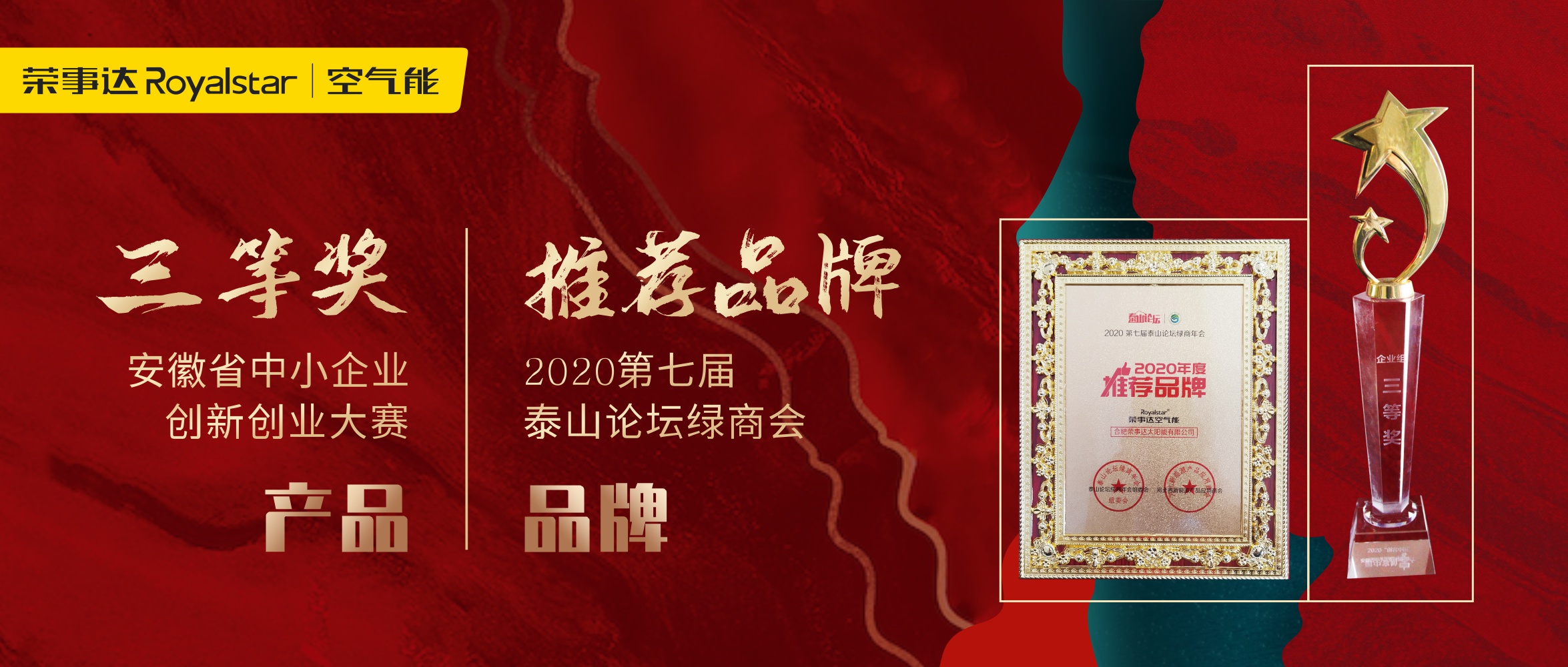 安徽省经信厅发布《关于公布2020年“创客中国”安徽省中小企业创新创业大赛获奖名单的通知》,荣事达空气能“超低温变频冷暖机”项目荣获三等奖2020第七届泰山论坛绿商年会上,荣事达空气能收割泰山...