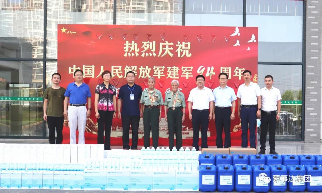 为纪念中国人民解放军建军94周年,弘扬拥军优属的光荣传统,8月1日,滁州市民政局党组书记、局长汪国玲,滁州市退役军人事务局党组书记、局长丁勇带队看望慰问滁州市光荣院的老战士们,向全体老战士以及家属致以节日的问候和崇高的敬意。荣事达集团助理总裁潘启文、荣事达生态圈合作客户滁州市蓝鱼环保科技有限公司董事长吕刚参与了本次慰问活动。