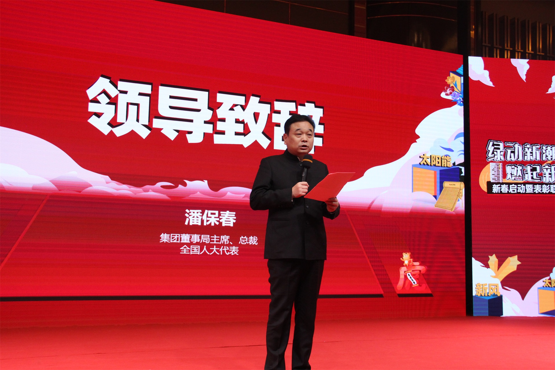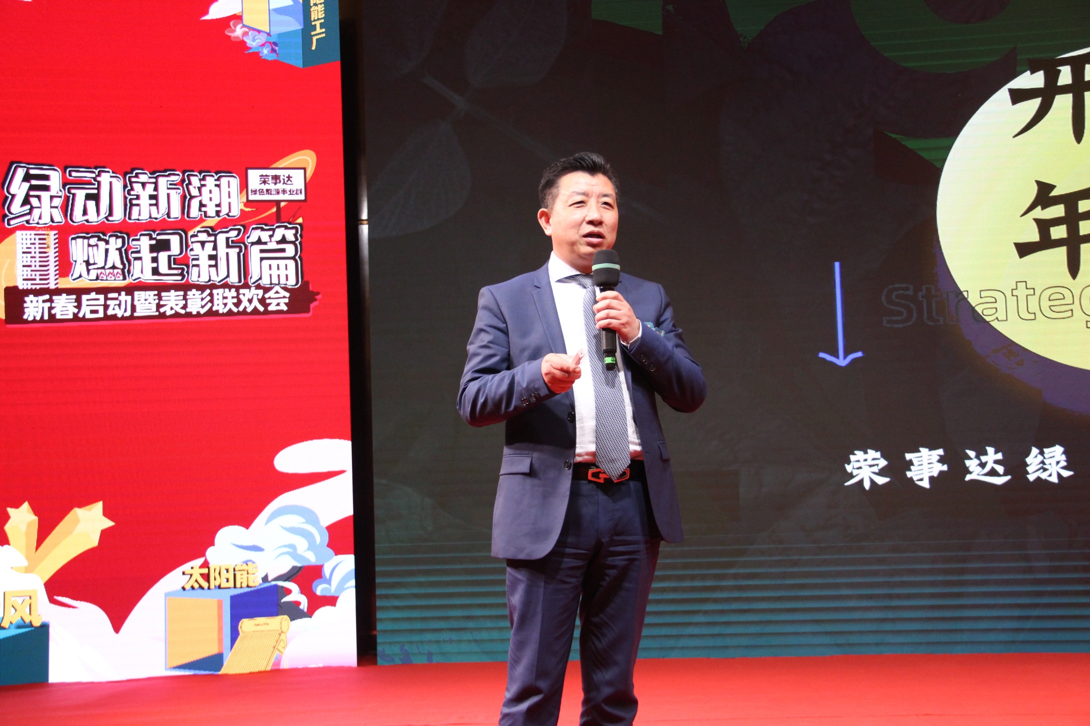 全国人大代表、荣事达集团董事局主席、集团总裁潘保春发表了致辞,总结概括了2021年荣事达绿色能源事业群取得的成绩,高度肯定和赞扬了全体成员的辛勤付出,并勉励鼓舞全员再创佳绩、再谱新篇。